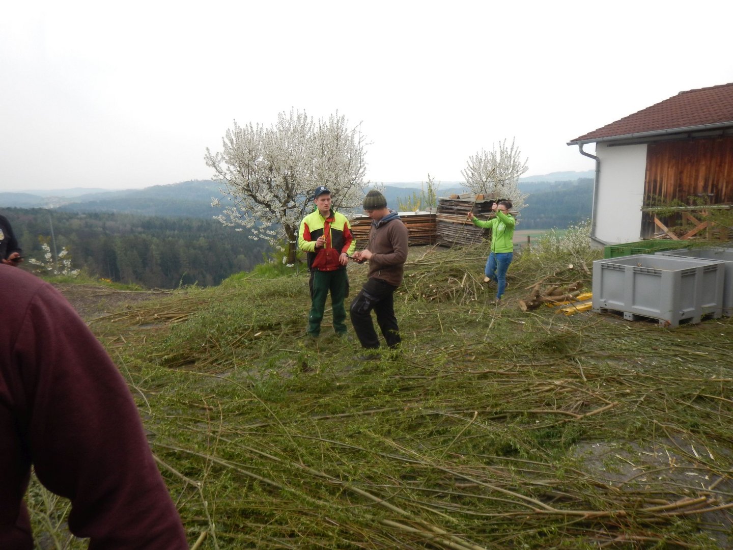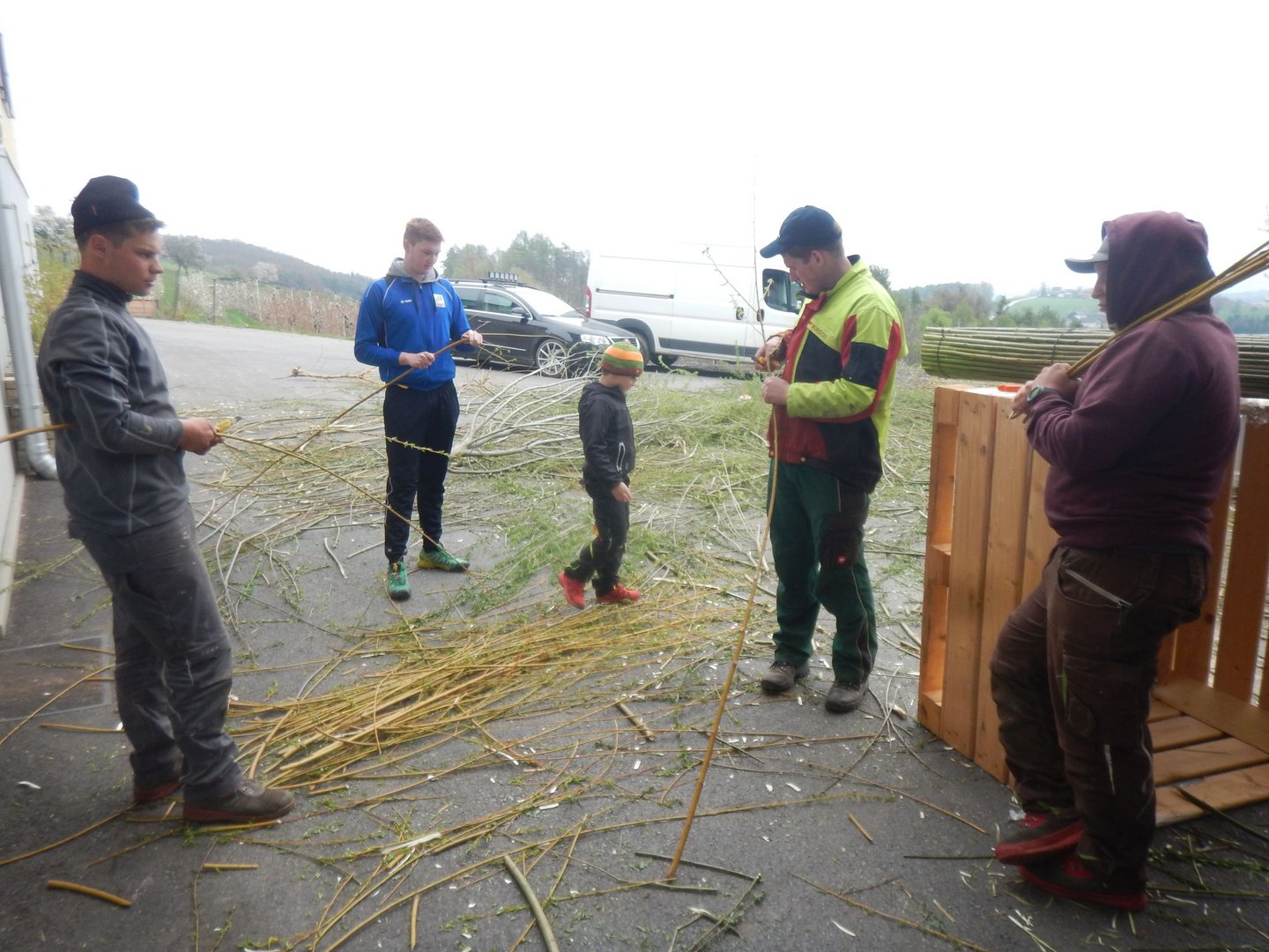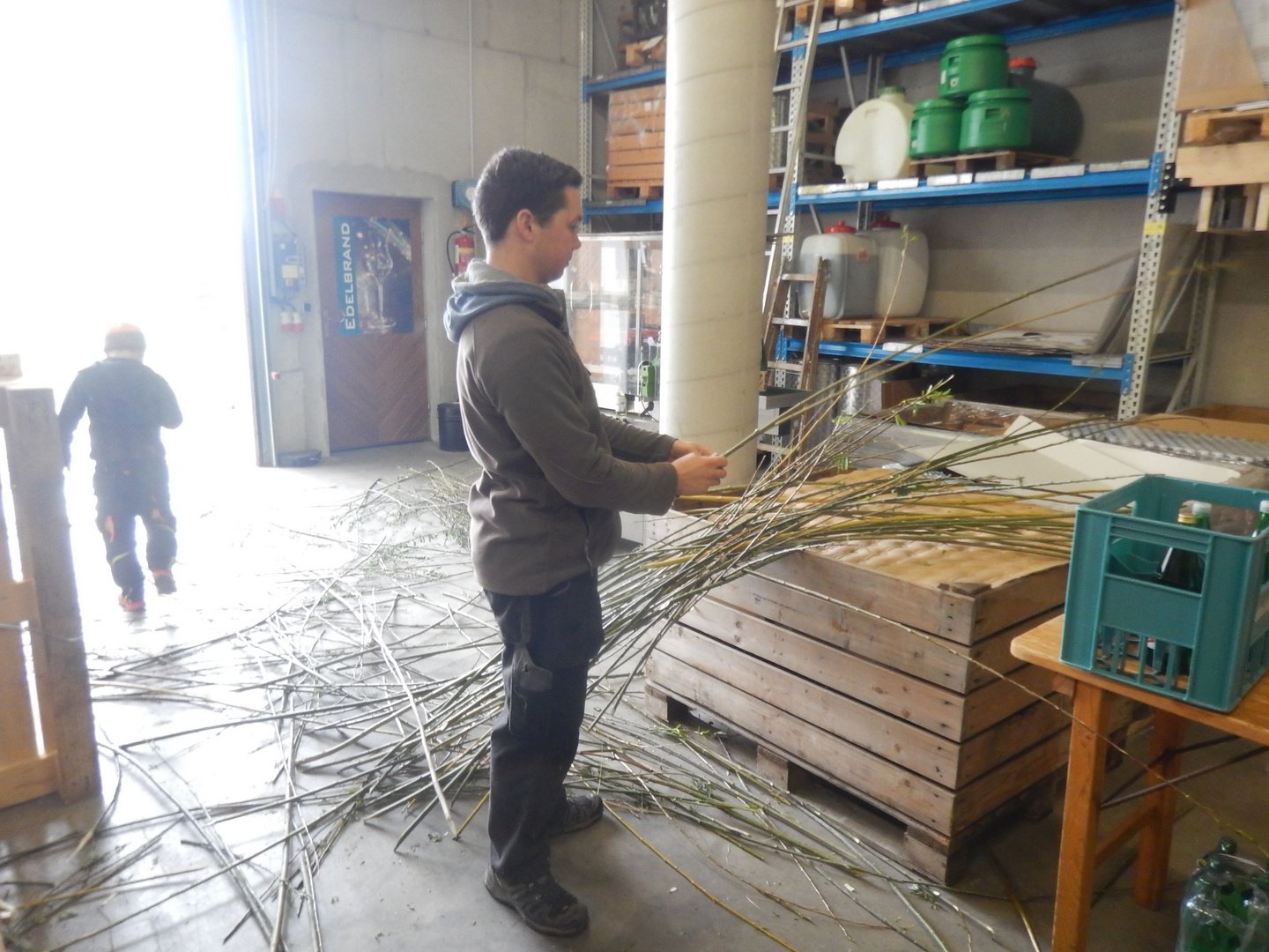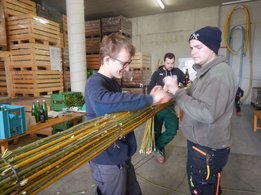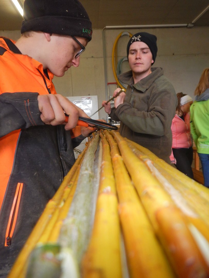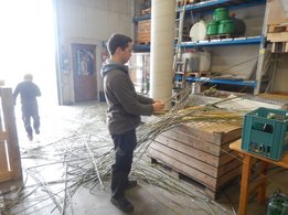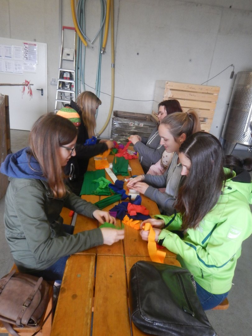 Danke sagen wir an die Familie Macher, dass wir den Palmbuschen wieder in ihrer Obstlagerhalle binden durften.